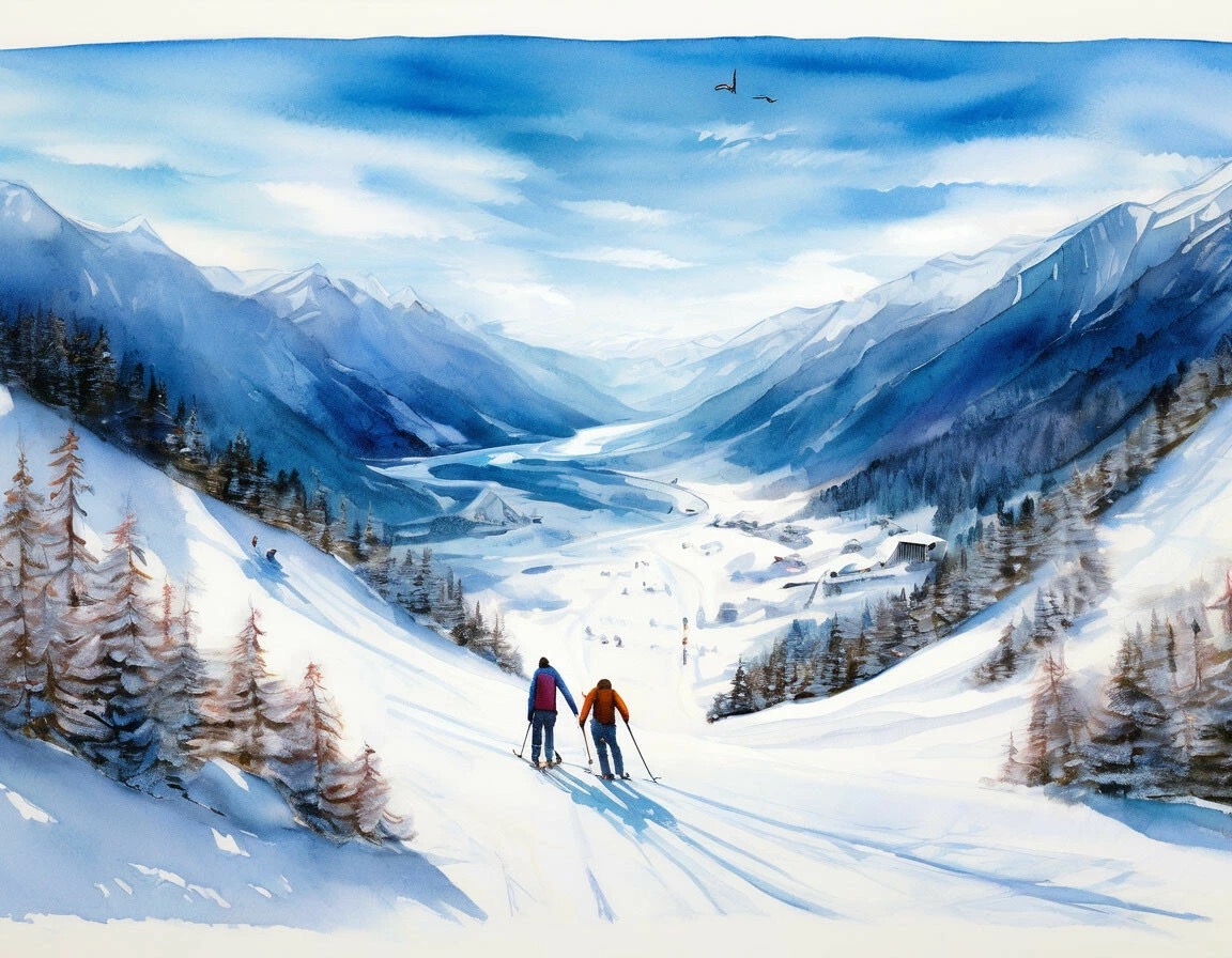 Лыжня бежит через простор,