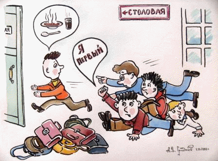 спешил в столовку пообедать
