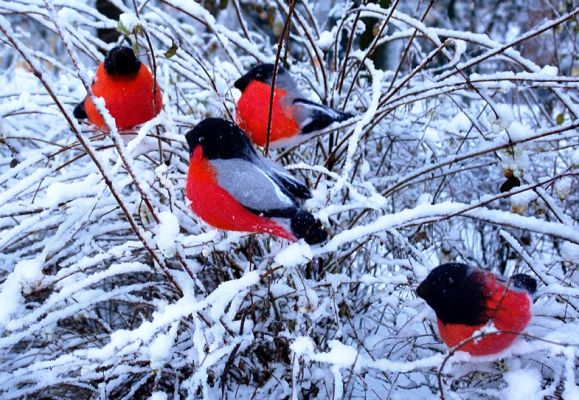 Снегирей лесных порханье.