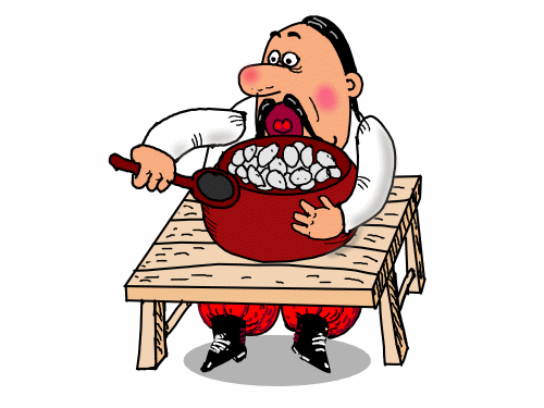 Рублю ложкой, как саблей с плеча.