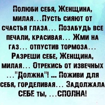 Надо женщине научиться любить себя и тогда её все будут любить и уважать!