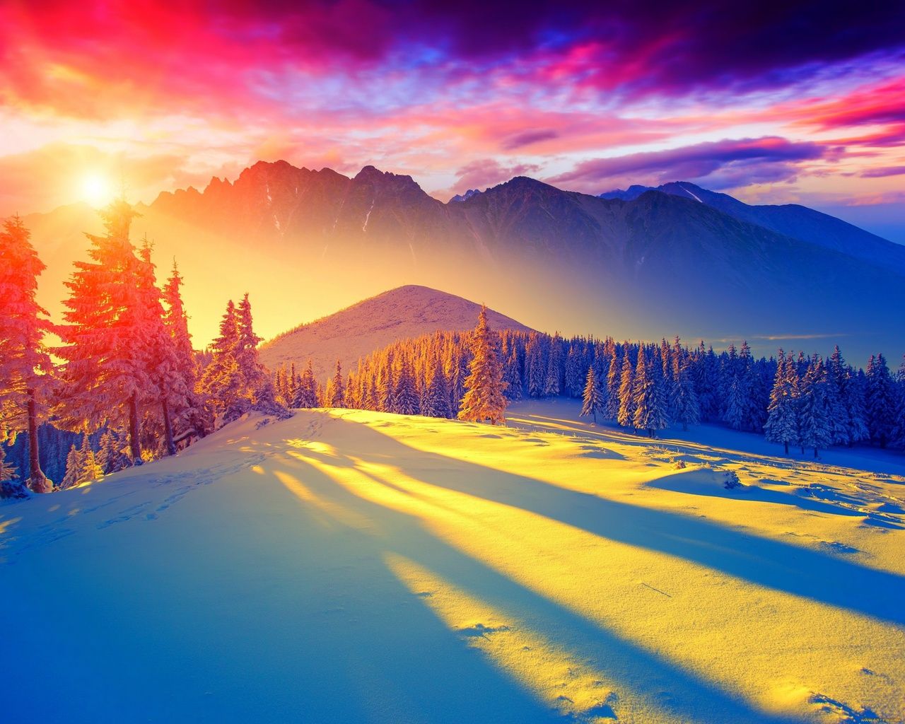 Над заснеженной горной долиной