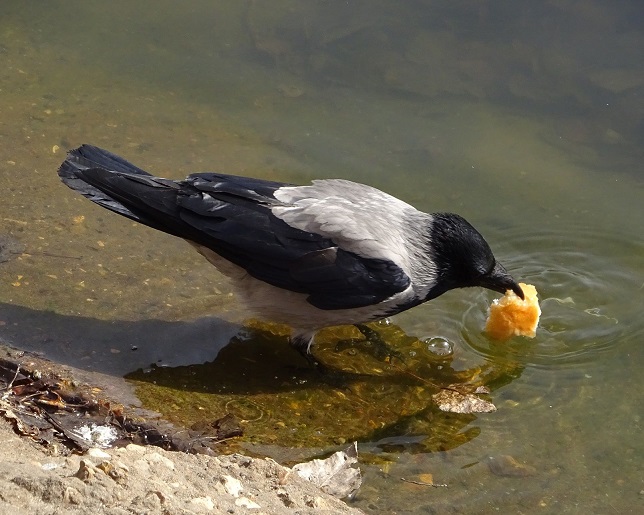 горбушку подцепила, с размаху в лужу-бах!