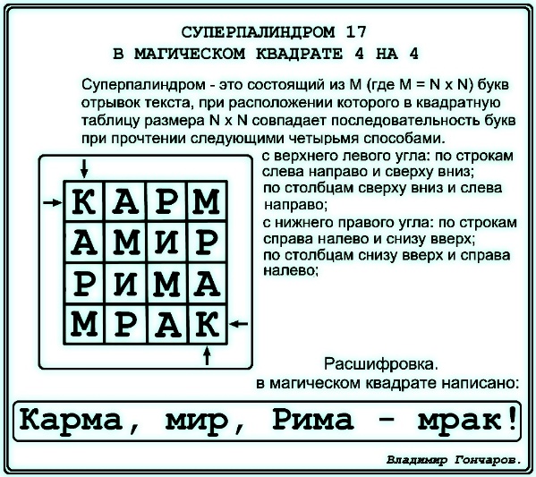 Суперпалиндром 17 в квадрате 4х4