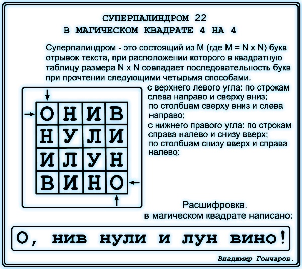Суперпалиндром 22 в квадрате 4х4