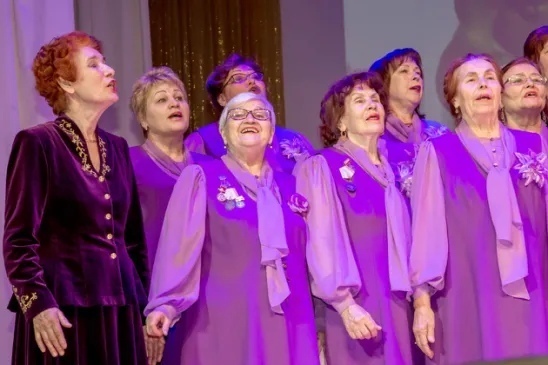 на фото хор ветеранов "Надежда" на сцене ДК г.Лениногорск
