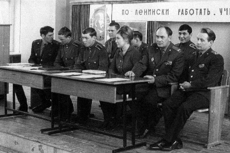 Комментарий автора к снимку из архива Ахмаджона Касымова: «В президиуме комсомольского собрания 1-го батальона, третий слева Вячеслав Казакевич»
