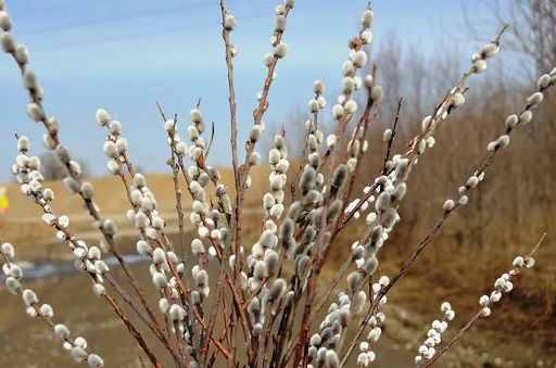 Верба расцвела, на ветках цветочки