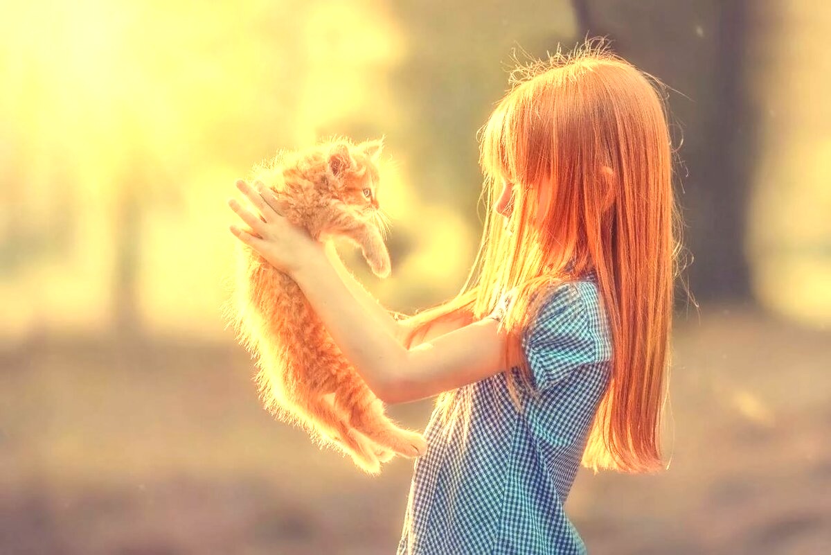 Они шли рядом - девочка и кошка,
