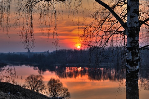 Под закатом дремлет синий вечер.