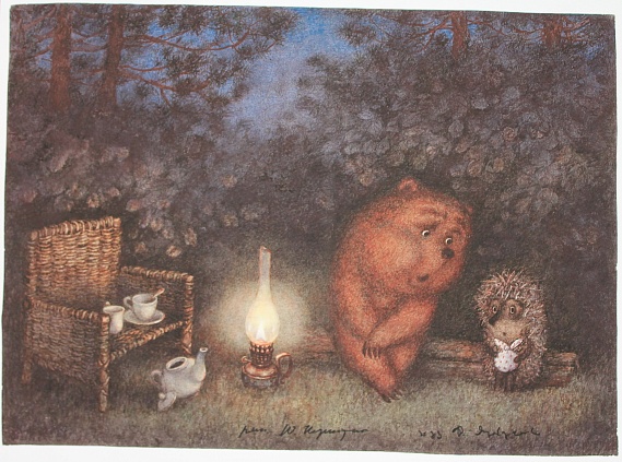 Цитата:"Медвежонок прижался спиной к печке. Ему было тепло-тепло и не хотелось шевелиться.