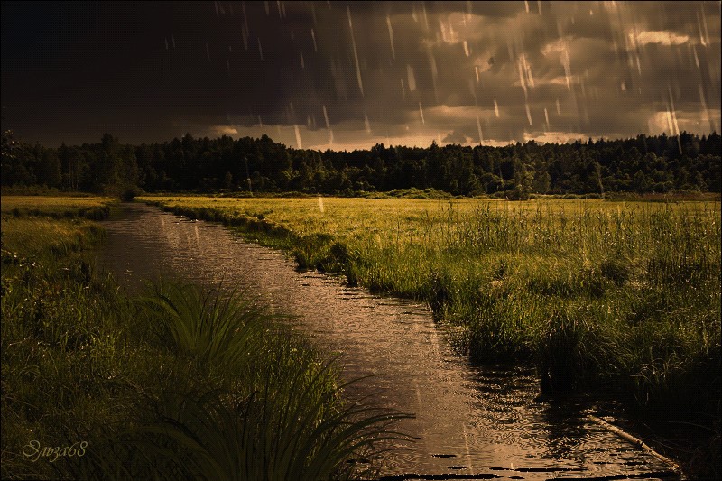 Громыхала гроза, и дождём поливало берёзы,