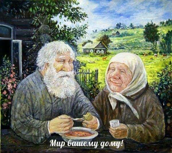 Тихо подошла бабуля,приголубила дедулю.