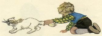 Дёргает за хвост кота ,-