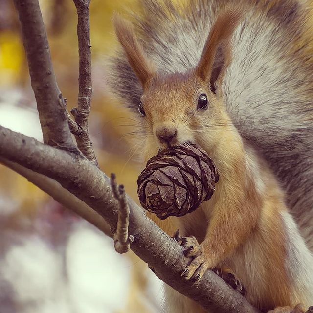 Белка шишку в лапках держит , смотрит косо