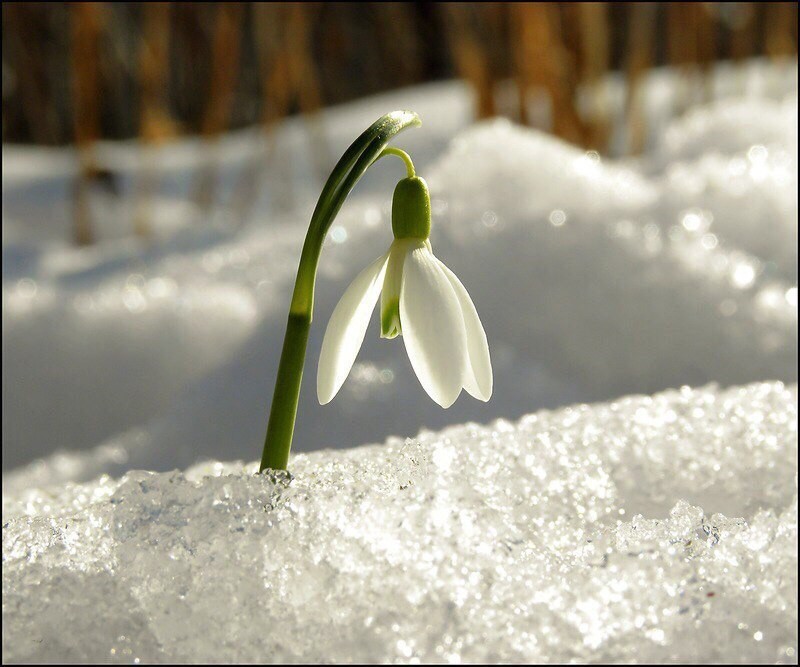 Нежный подснежник на шум поспешил,
