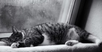 Кот, свернувшись на терраске,