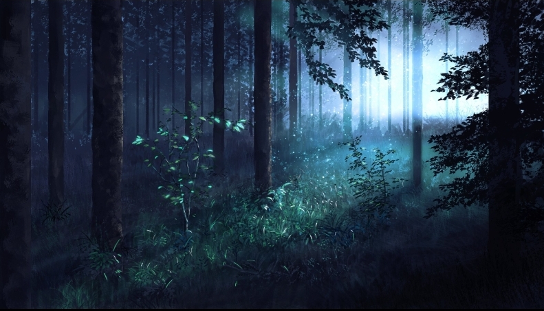 Лунным светом в деревьях заиграла листва.