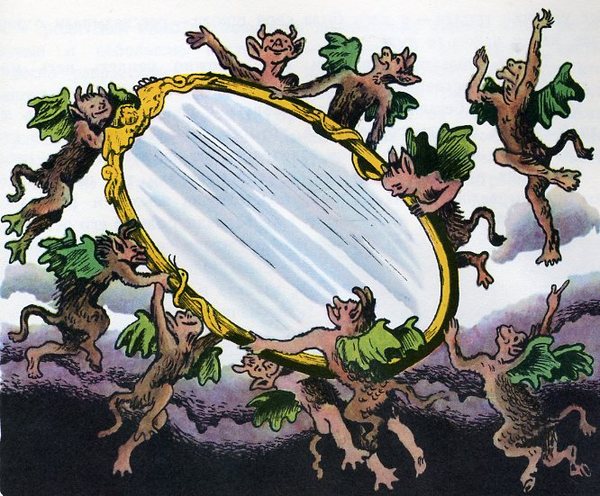 На изображении: зеркало злобного тролля из сказки Андерсена.