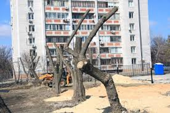 Яблоню спилили.