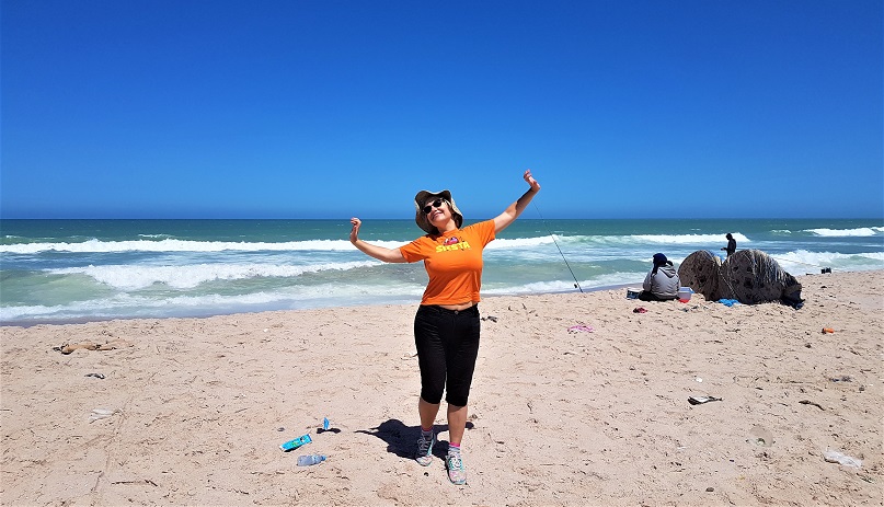 Доезжаем до самого мыса полуострова. Смотреть на океан, даже просто смотреть – такое счастье! А муж ещё пошел ловить волну. Класс! Но надо возвращаться обратно. Вдруг по дороге поднялся страшный ветер, такой, что нас стало сносить с велосипедов. Я помню ужасный ветроган на Фуэртевентуре, ехать местами там было совершенно невозможно, так и здесь, но чуть потише – всё-таки это не Канары, хотя острова и недалеко. Мне даже пришлось надеть свой шарф на голову, потому что одно ухо, казалось, продувается насквозь! Видео: велопробег по Западной Сахаре http://stihi.ru/go/youtu.be/yJVZlthElvs
