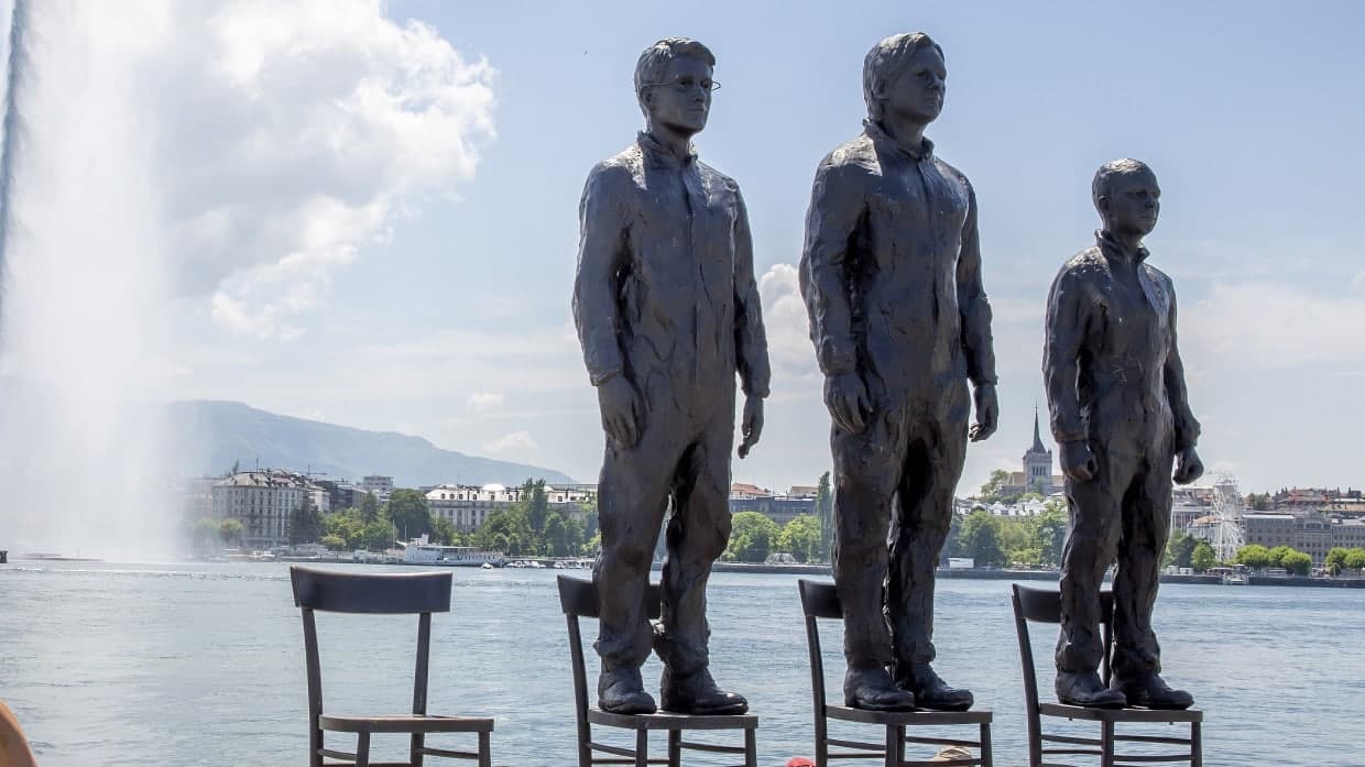 Встали на Женевский берег,