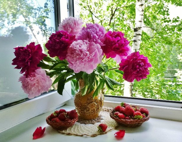 Пионы и клубника,