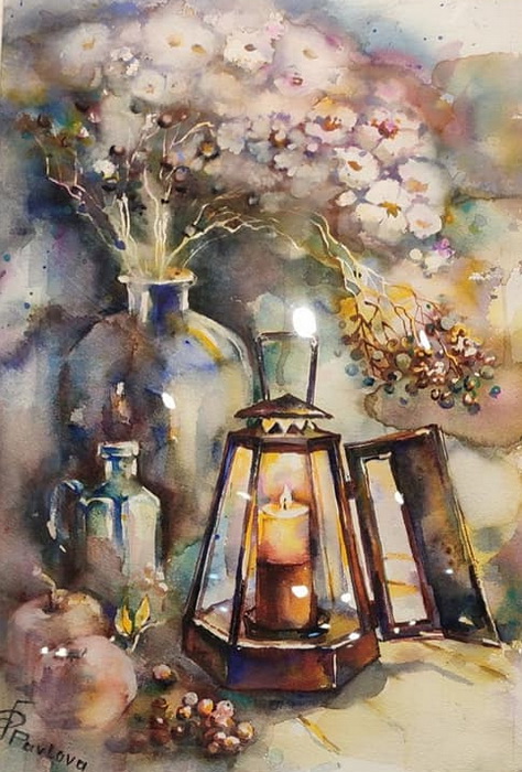 Работа Лилии Павловлой "Салют в графине"- 25-летней давности, сегодня 25 лет ,как мы познакомились и дружим!