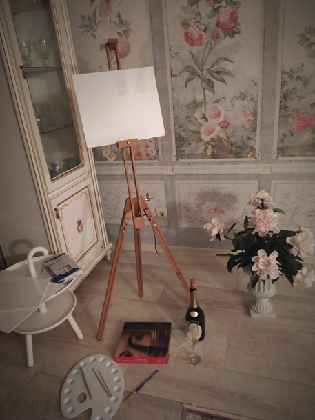 сосуд вдохновительный возле мольберта...