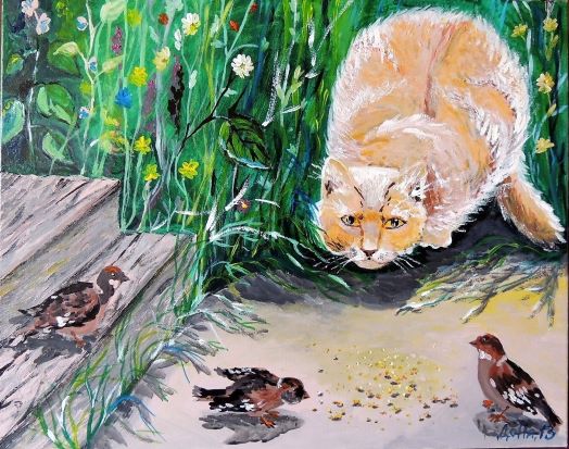 Крадётся к птицам кошка... Брысь!