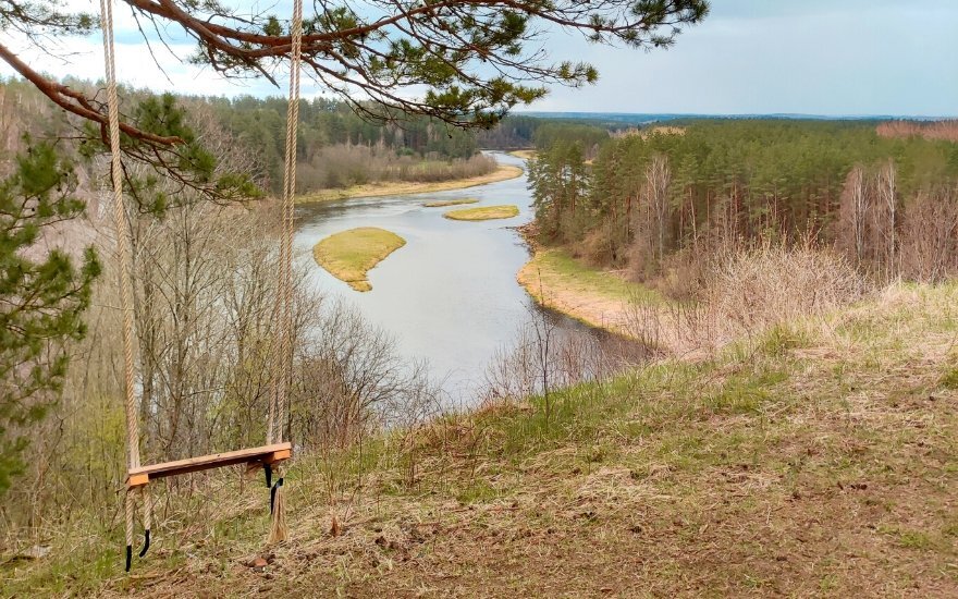Качаясь на качелях в летний день