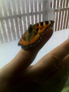 На палец бабочка зимой