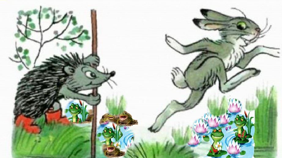 На  кочку  он  прыгает  с кочки,