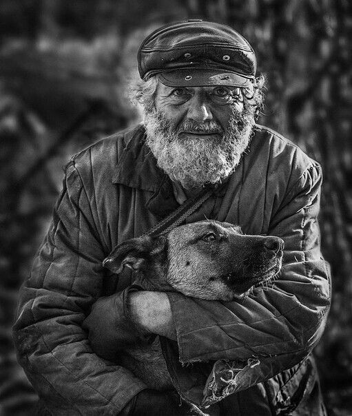 Бомж с собакой в стороне сидел.