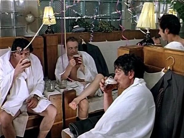 Во время съемок у Э. Рязанова в фильме «Ирония судьбы, или С легким паром!» актеры устроили настоящий дебош: «банную сцену» снимали ночью в холодном коридоре «Мосфильма», и чтобы согреться, Александр Ширвиндт, Андрей Мягков, Георгий Бурков и Александр Белявский принесли с собой по бутылке водки и подменили ими реквизиторские бутылки с водой. А пиво в кадре было настоящее. После первого же дубля актеры почувствовали небывалый подъем и вдохновение. После третьего дубля их чересчур правдоподобное опьянение стало заметно всей творческой группе, Рязанов пришел в ярость и остановил съемку. На следующий день актеры играли ту же сцену в трезвом состоянии. Но в фильм в результате вошли кадры, снятые в первую ночь.