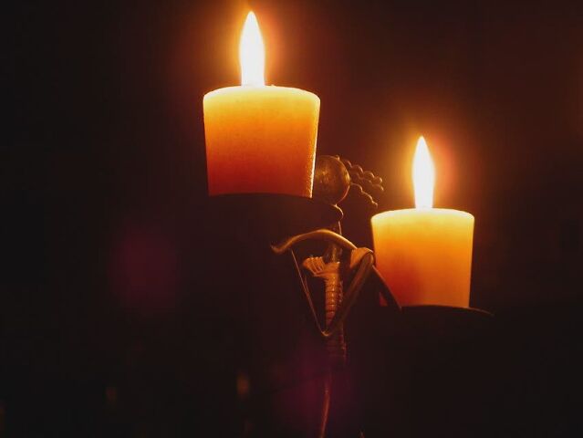 С двумя зажженными свечами Александр зашел в темную