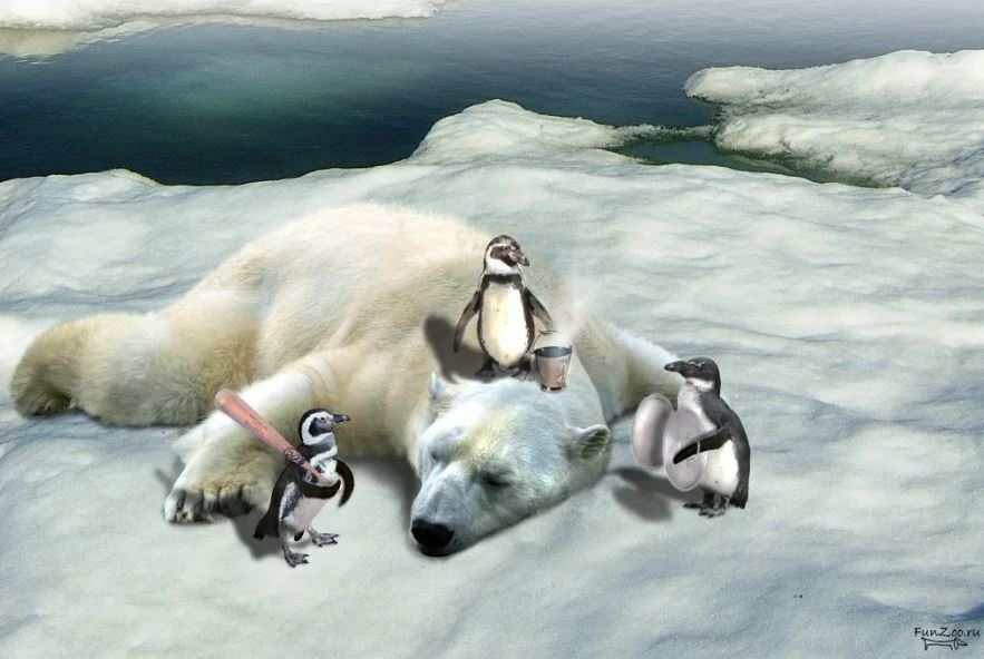 ПОЛЯРНЫЕ МЕДВЕДИ И ПИНГВИНЫ ЖИЛИ НА ОБОИХ ПОЛЮСАХ. НО НА СЕВЕРЕ ДИКИЕ ЛЮДИ ИСТРЕБИЛИ ВСЕХ ПИНГВИНОВ РАДИ ИХ МЯСА И ЖИРА (медведей боялись) А НА ЮЖНОМ ПОЛЮСЕ НЕ БОЯЛИСЬ – БЕЛЫХ ПОЛЯРНЫХ МЕДВЕДЕЙ УНИЧТОЖИЛИ РАДИ МЕХА. А ПИНГВИНОВ ПРИРУЧАЛИ И ИСПОЛЬЗОВАЛИ ДЛЯ РЫБАЛКИ.