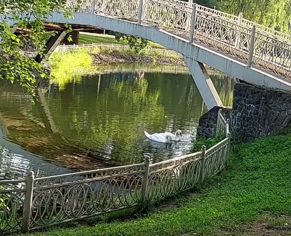 отражается жизнь парка, лебедей.