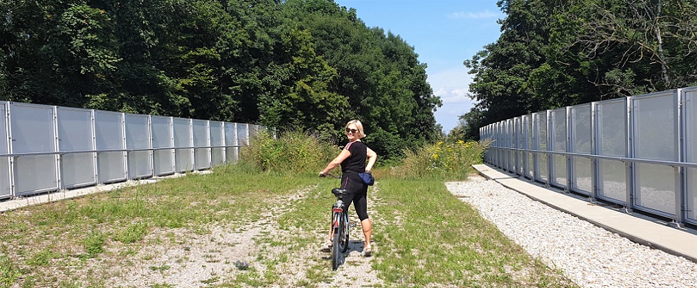 Мы любопытные, нам необходимо посмотреть как он выглядит, и муж меня тащит через кусты вместе с великом. Я боюсь нацеплять клещей. Моя подруга и её друг недавно ходили в лес и приволокли их. В результате врач назначил 21 день пить антибиотики. Короче, продрались сквозь чащу и - вот он мост! Порос травой, никого здесь нет, тропинка еле видна, но зато нашли! Смотрите видео https://www.youtube.com/watch?v=VfAziOY_6c8
