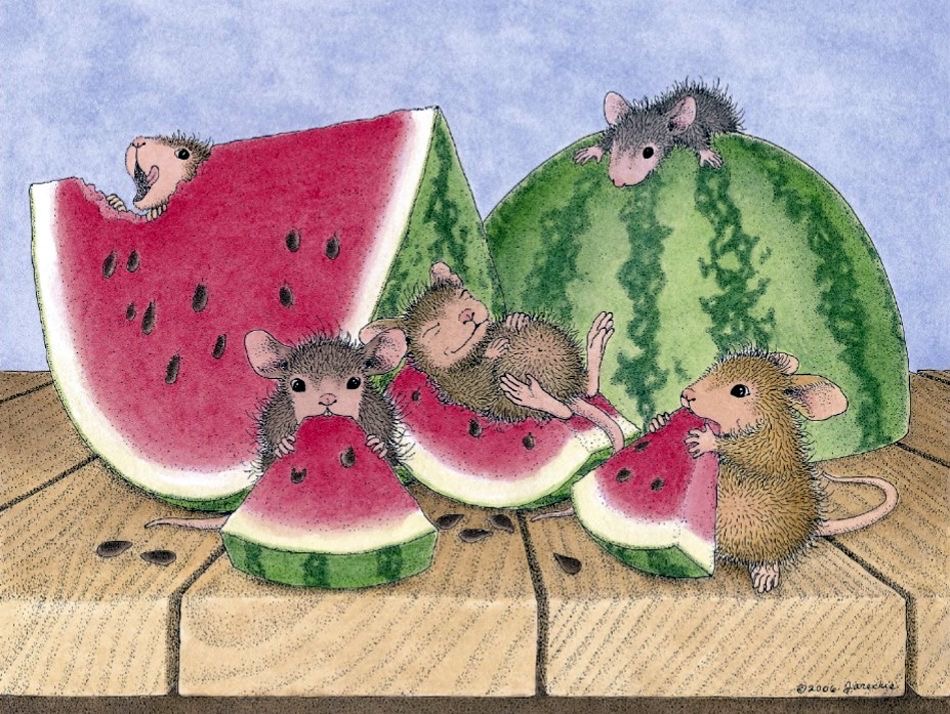 Шарахнулись мышата арбуза-теремка