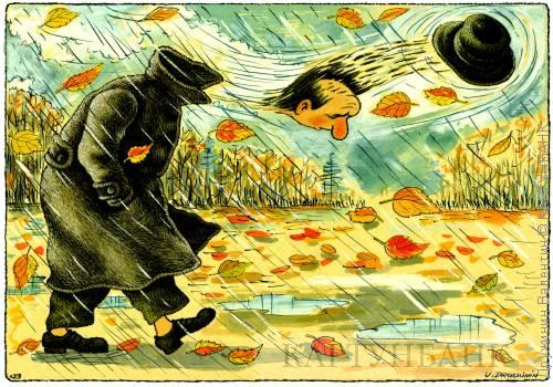 Сквозь сильный ветер, по оврагам, он пробирается с трудом...