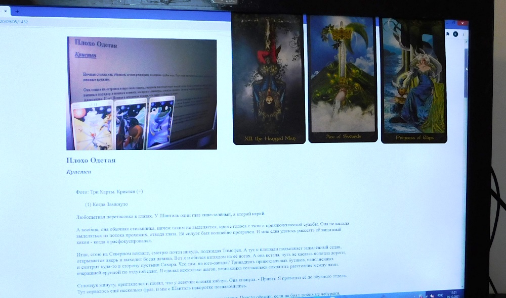 Это было ТО САМОЕ послание с раскладом карт: последний расклад таро. В письме Александра не было ни одного слова, лишь вложено изображение трёх карт, расположенных в виде стрелки, или словно зонтом. И значило это: его ликвидировали на границе Перехода, загнав в теневую параллель между живыми мирами. Король Монет и Десятка Мечей - его больше нет. И под ними расположена Принцесса Чаш - это адрес их тайника. И всё.