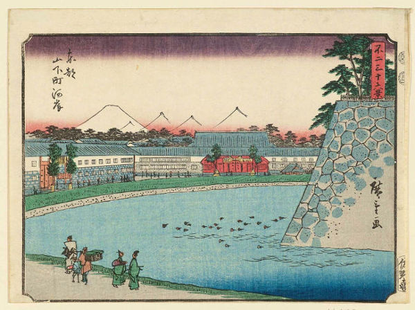 (Иллюстрация: Андо Хиросигэ (1797 -1858) «36 видов Фудзи» 1852 год. «Берег реки Ямасита-тё в Эдо»)