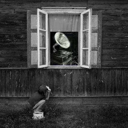 В окне играет старый патефон.