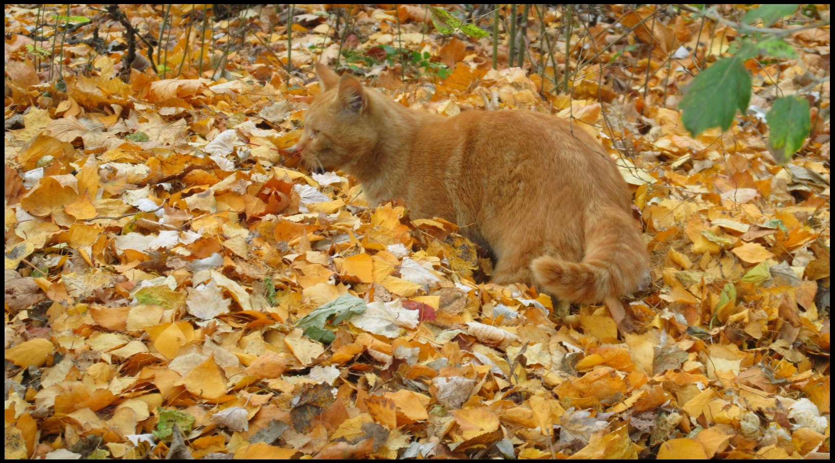 Кот лежал в куче таких же рыжих, как и он листьев. И даже, кажется, вырыл себе небольшое углубление — окопчик.