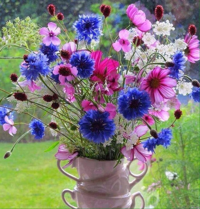 А в полях васильки и пишу я строчки.