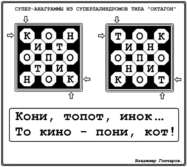 супер-анаграмма из суперпалиндромов типа "октагон".