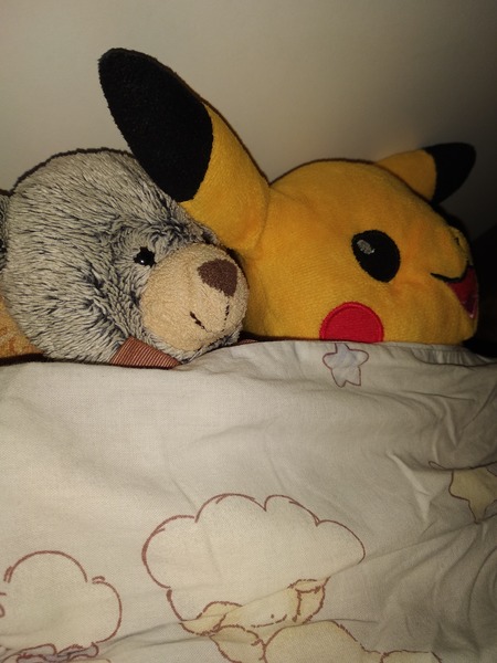 Мишка греет мне бочок...