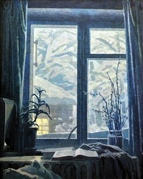 Иллюстрация к стихотворению: «Зимнее окно». Художник А.Н. Безумов, 1971 г.