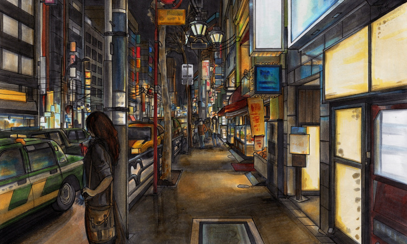 Застыв у лавки с фотоаппаратами.